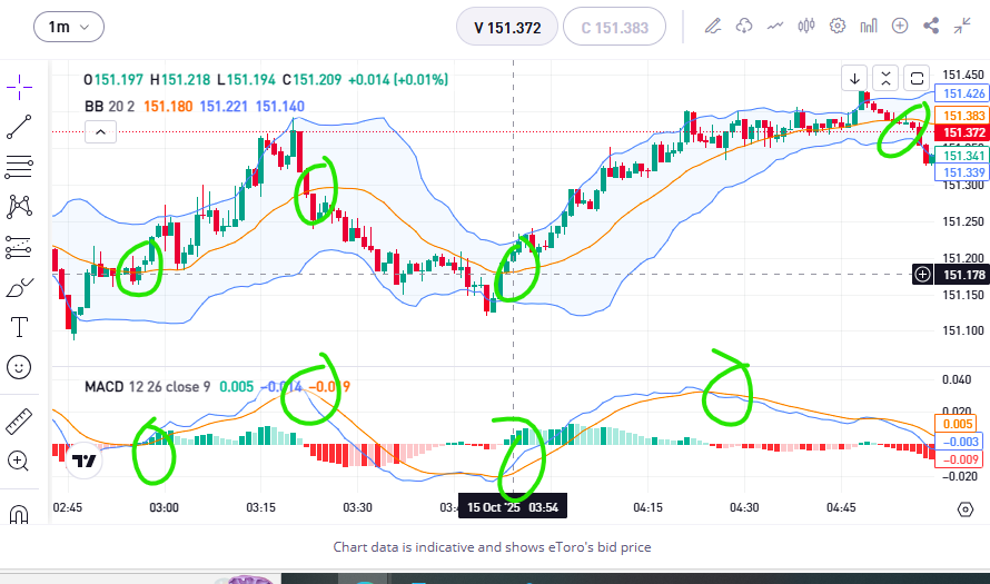 Así, el trader se alinea con la fuerza del mercado, esperando confirmaciones de entrada donde el precio y el momentum coinciden, logrando así operaciones más limpias y efectivas.