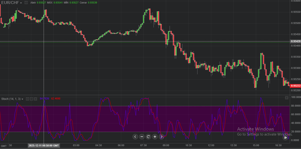 Las divergencias entre el precio y el estocástico son señales tempranas de posibles reversiones, especialmente cuando coinciden con niveles clave de soporte o resistencia.Operar en rangos: